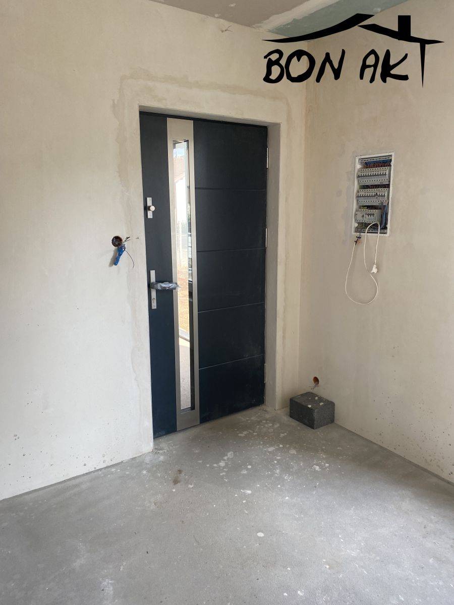 - okna PCV 3-szybowe w kolorze antracyt, rolety antywłamaniowe podtynkowe w tym samym odcieniu, balkoniki francuskie
