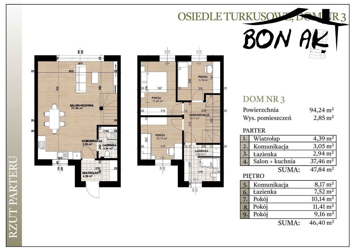 - Trzy sypialnie o powierzchniach: 10,14 m², 11,41 m² oraz 9,16 m²