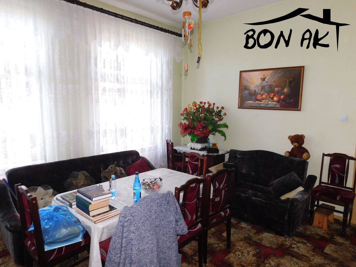 Część mieszkalna znajduje się na jednym poziomie i składa się z 5 przestronnych pokoi, funkcjonalnej kuchni oraz łazienki. Wysokość pomieszczeń to 3,5 metra, co podkreśla przestronność wnętrz. Okna drewniane wymagają wymiany, natomiast nad całością znajduje się strych, który można zaadaptować na cele mieszkaniowe. Dom jest podpiwniczony, co zapewnia dodatkową przestrzeń do przechowywania.