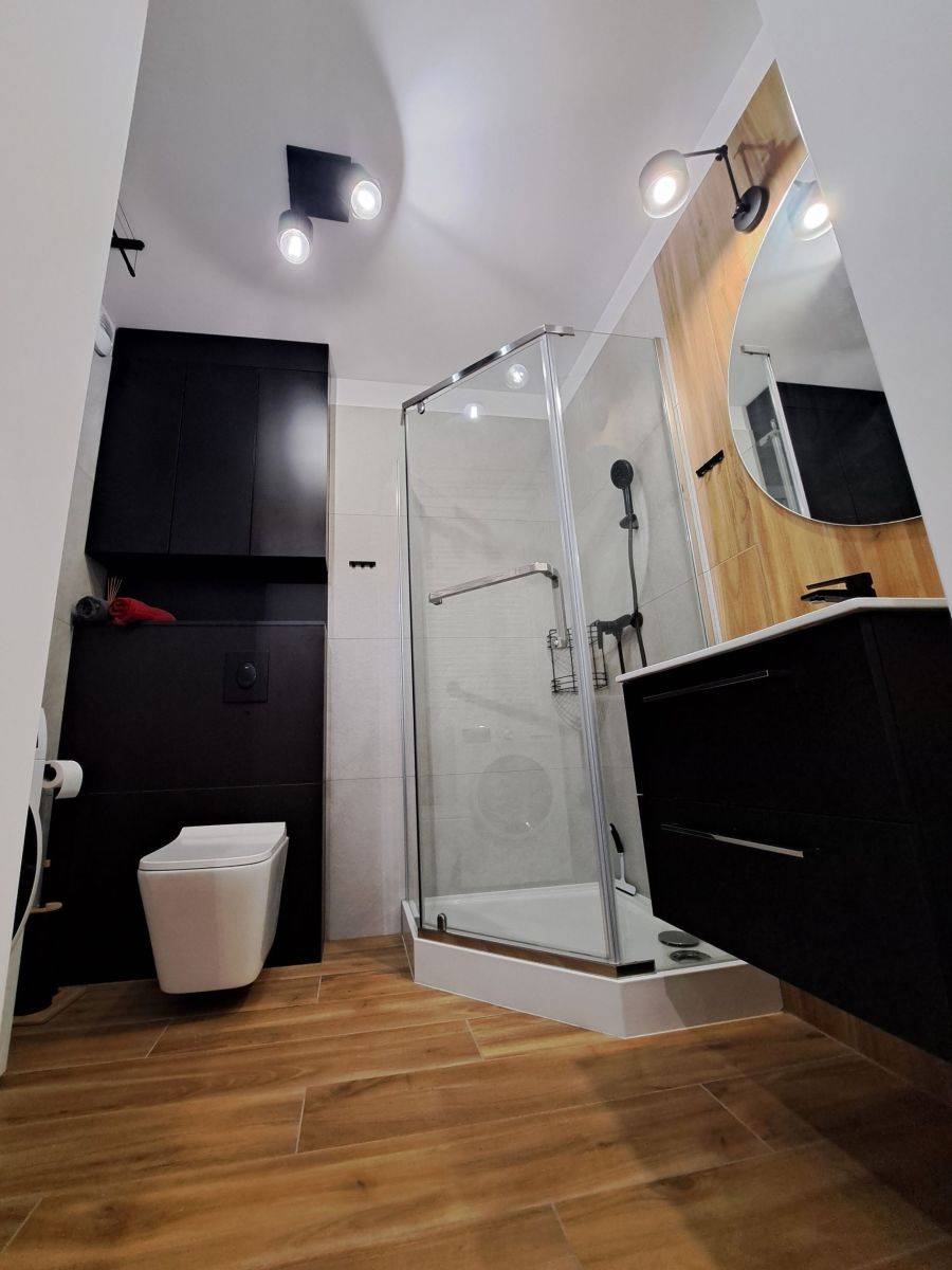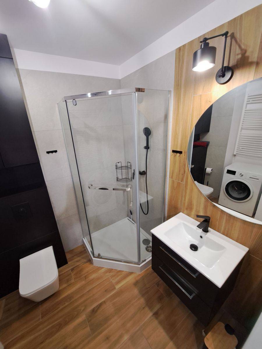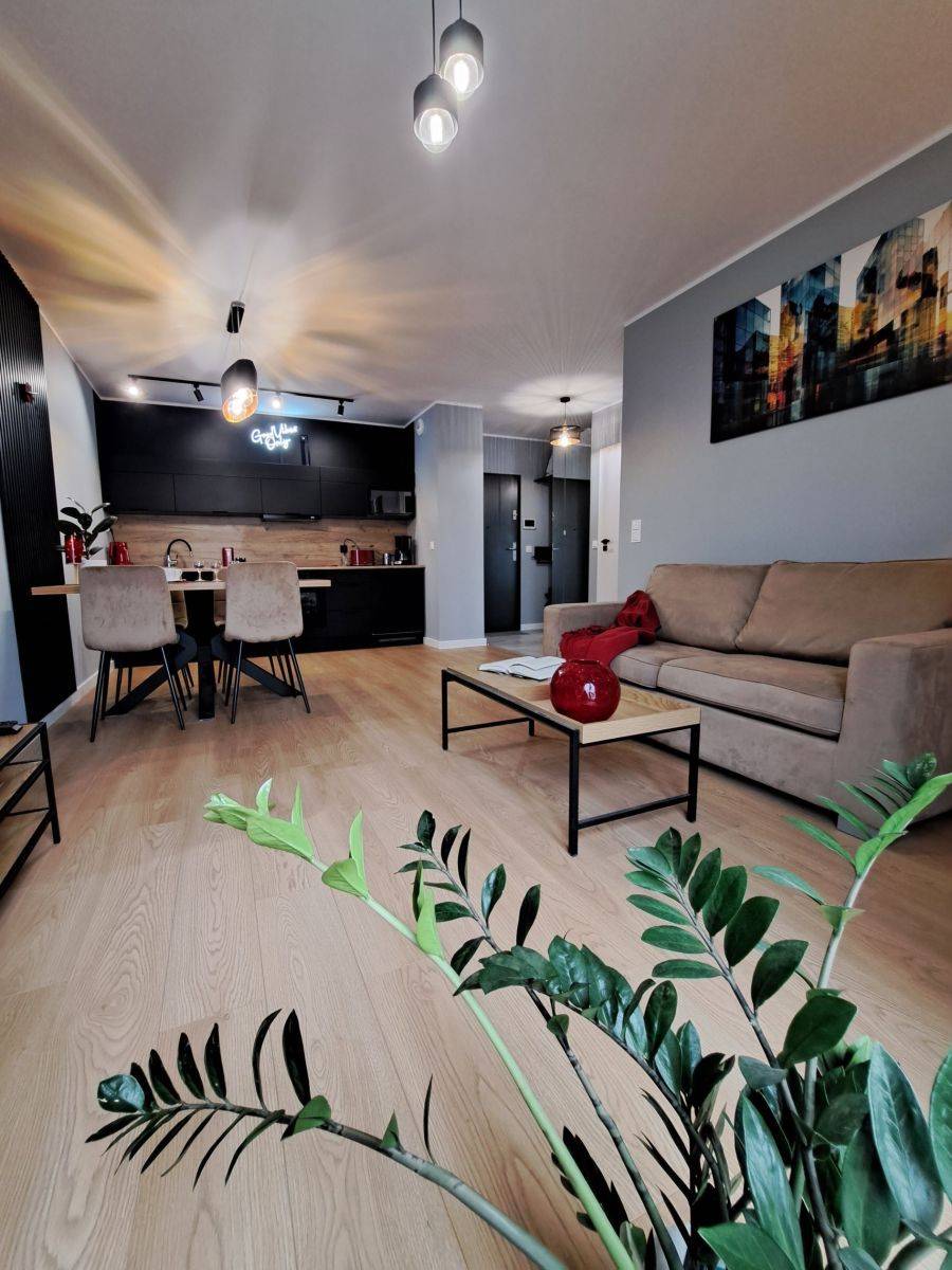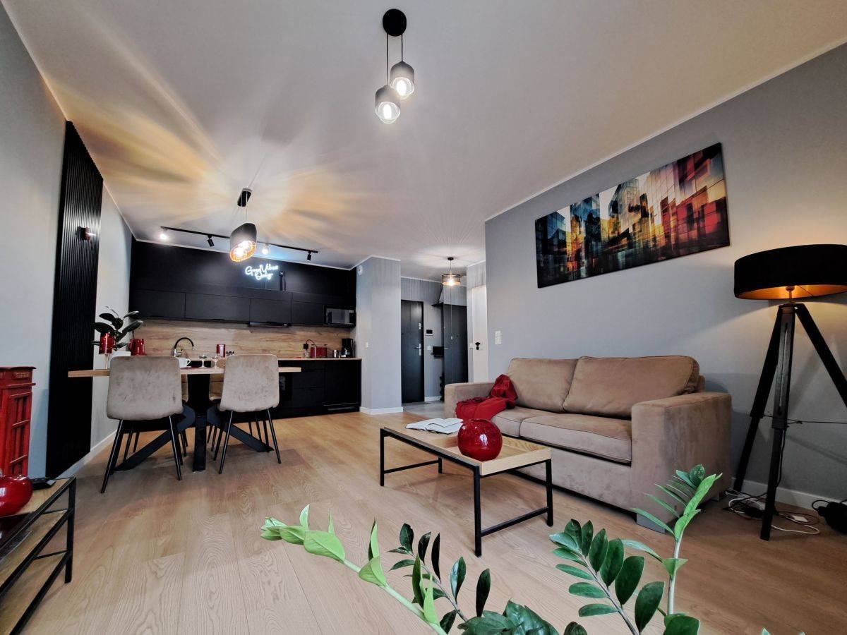 - Kuchnia z wysokiej klasy sprzętem: płyta indukcyjna, piekarnik, chłodziarko-zamrażarka, okap kuchenny oraz zmywarka