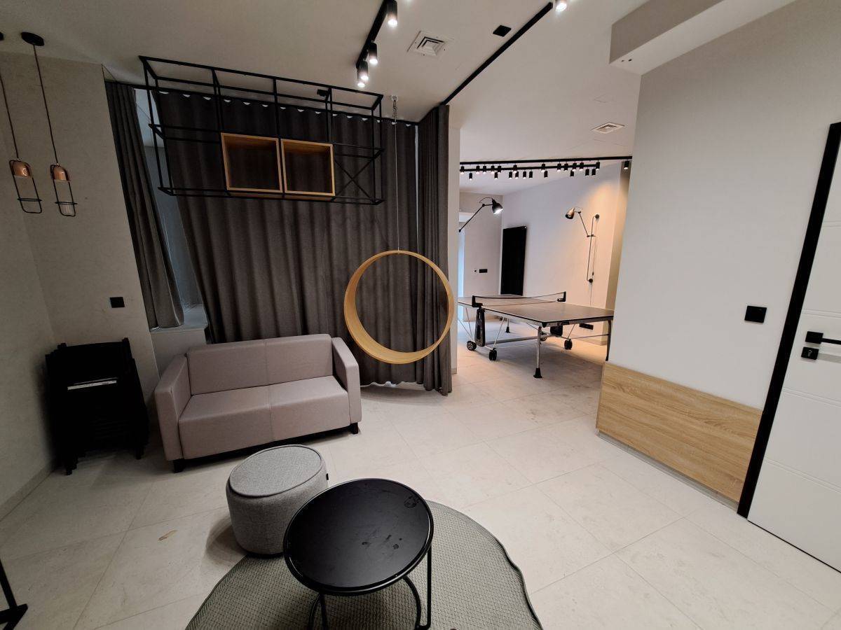 - Lobby na parterze, sprzyjające relaksowi i spotkaniom z przyjaciółmi gdzie znajduje się stół do Ping-Ponga oraz szybkie WiFi