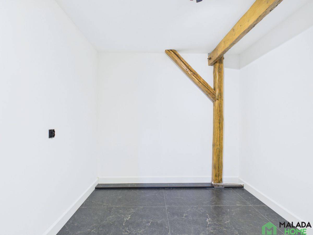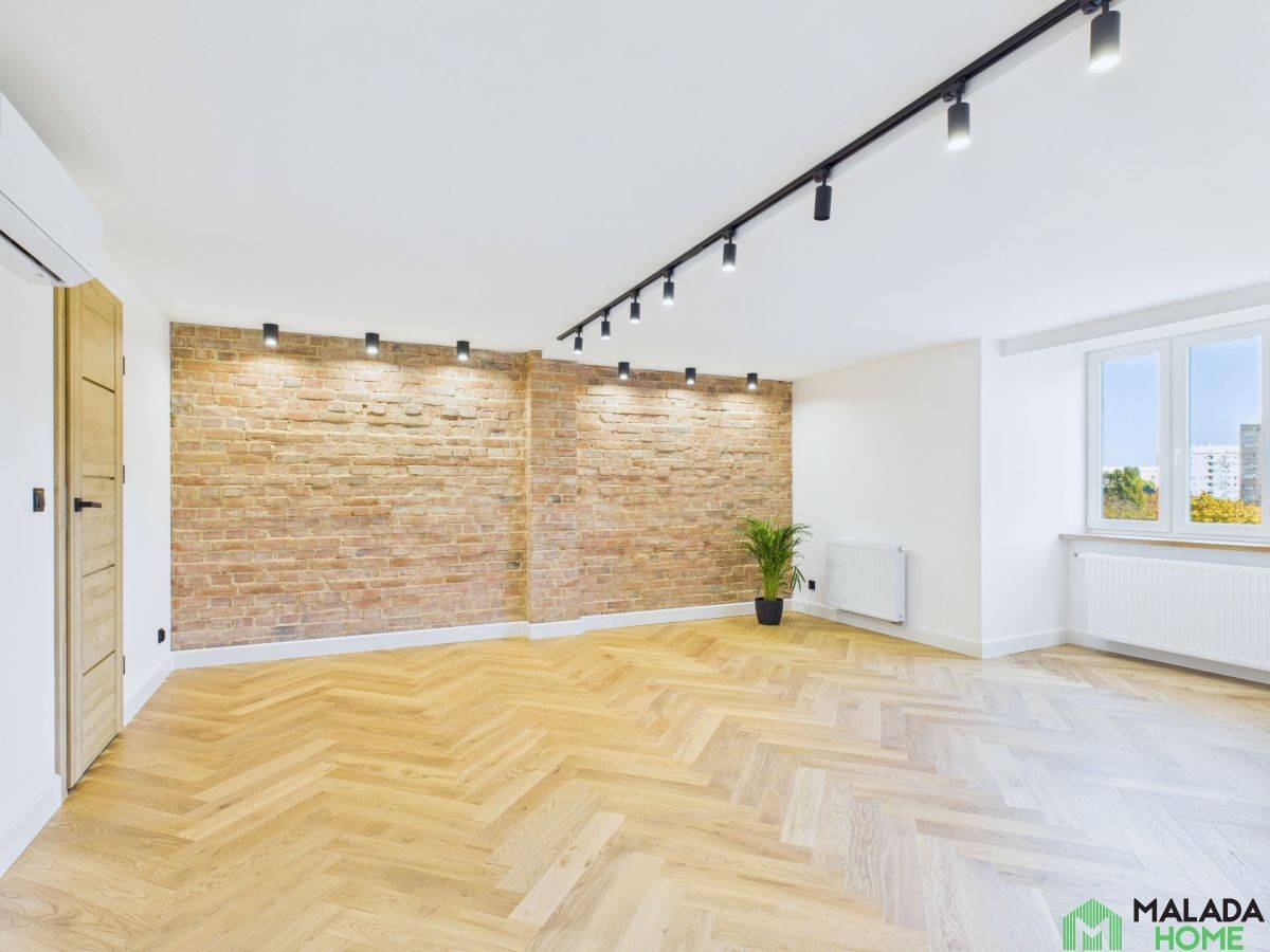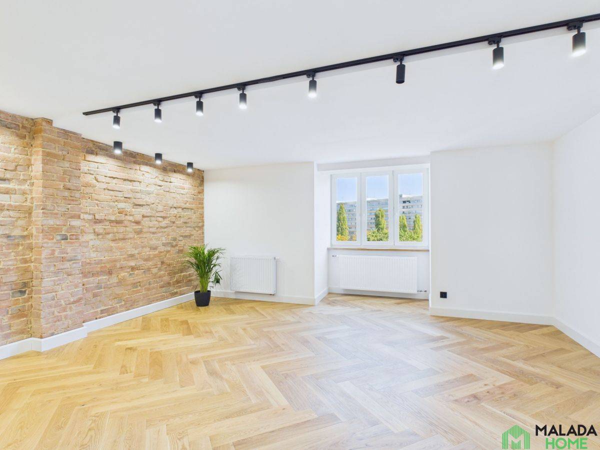 W korytarzu i salonie wyeksponowano piękną, oryginalną cegłę - starannie oczyszczoną i odrestaurowaną, która dodaje przestrzeni wyjątkowego charakteru i podkreśla klimat kamienicy.