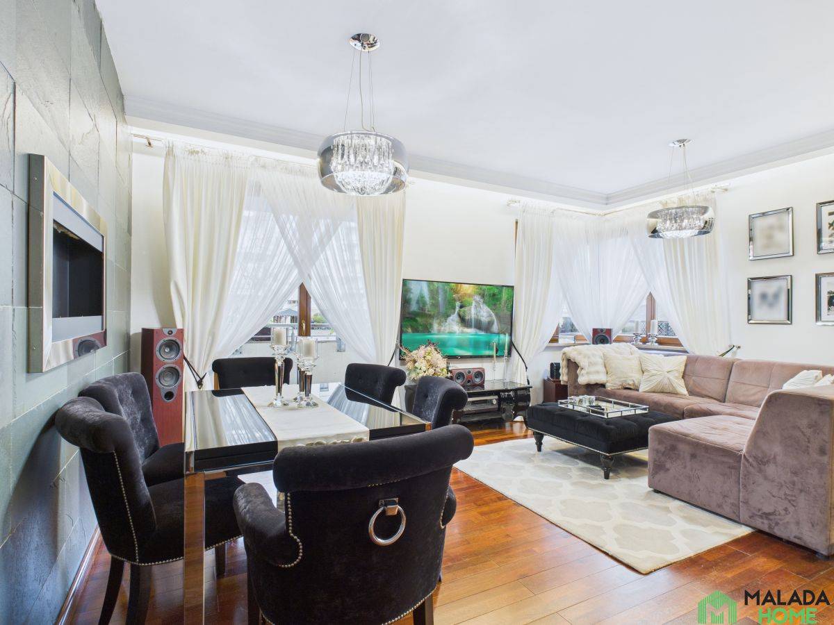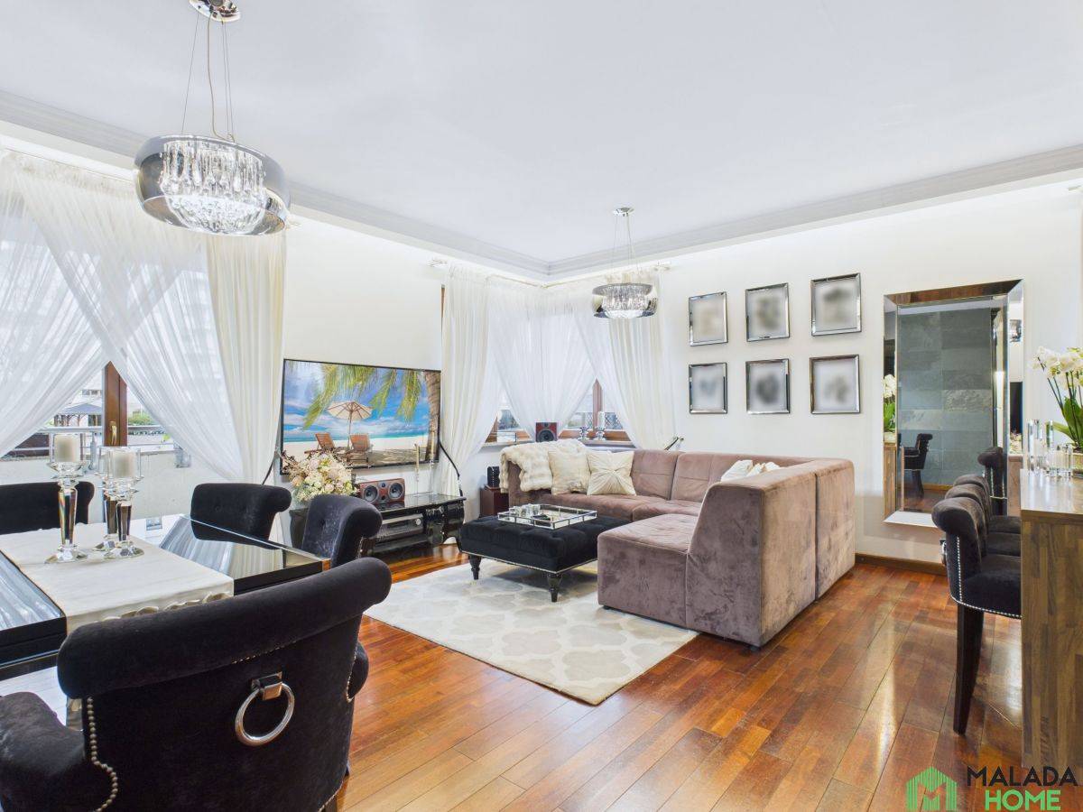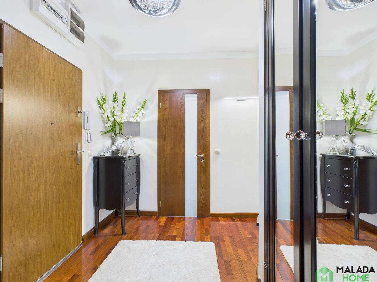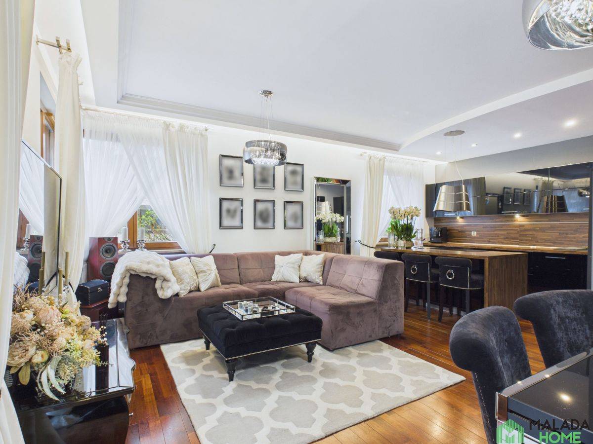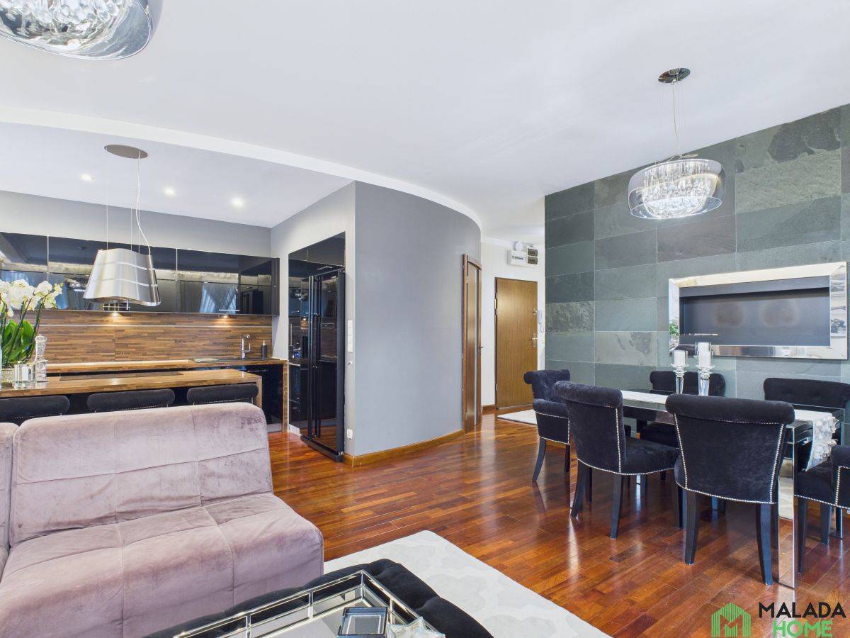 Mieszkanie wyróżnia się wysokiej jakości wykończeniem , starannie dobranymi materiałami oraz wystrojem w stylu glamour, który łączy elegancję z funkcjonalnością.