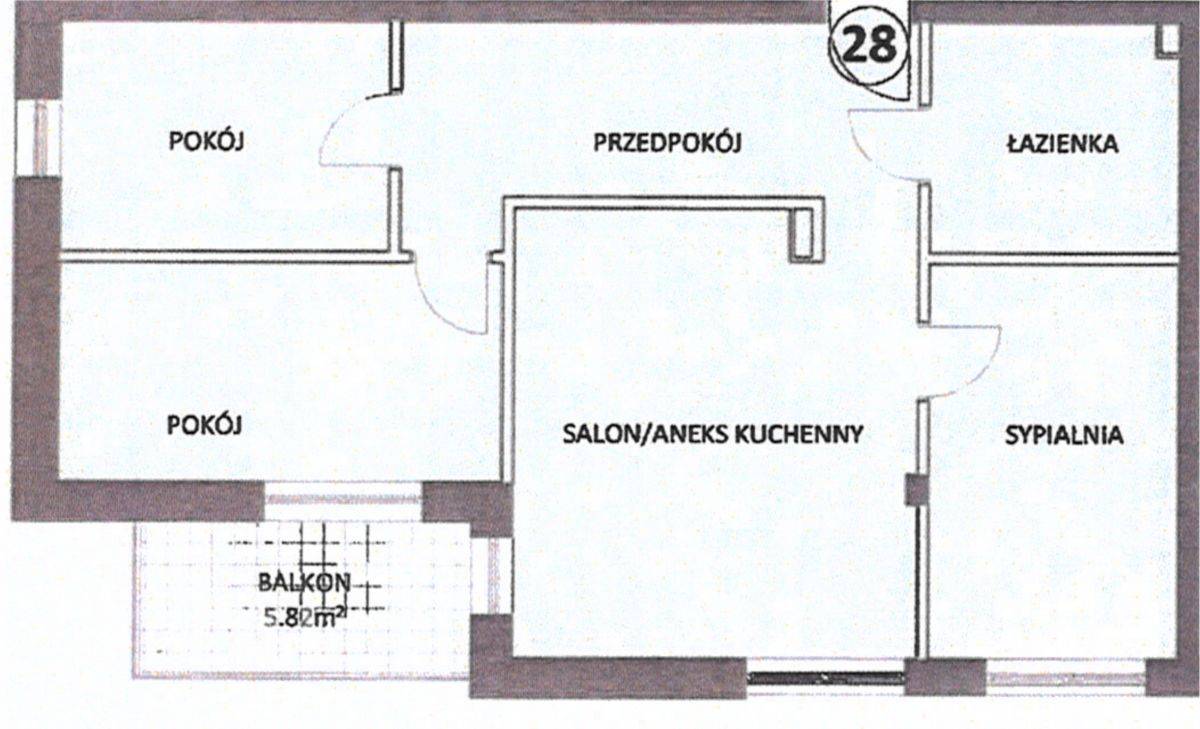 Układ mieszkania jest przemyślany i funkcjonalny. Trzy ustawne sypialnie oraz duży salon z aneksem kuchennym zapewniają komfort dla rodziny oraz odpowiednią przestrzeń do codziennego życia.