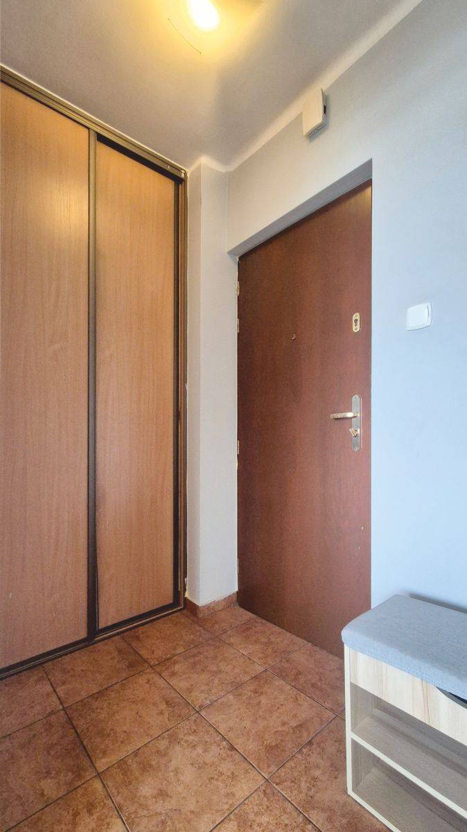 W przedpokoju znajduje się praktyczna, zabudowana szafa wnękowa oferująca dużo miejsca do przechowywania.