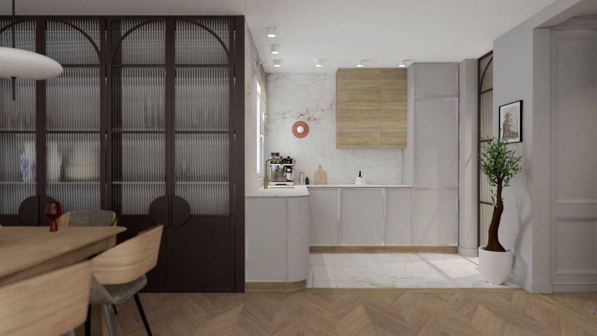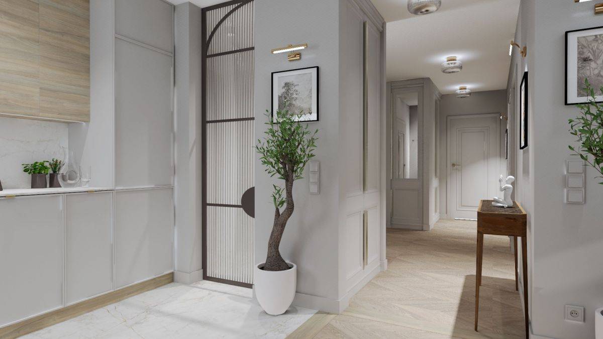 Wnętrza tego apartamentu zostały starannie zaprojektowane i wizualizowane przez doświadczonego architekta wnętrz, na podstawie dokładnych pomiarów. Efektem jest elegancka i harmonijna aranżacja, którą można w pełni przejąć i zrealizować według przedstawionych wizji, zapewniając sobie stylowy i funkcjonalny wystrój od razu po zakupie.