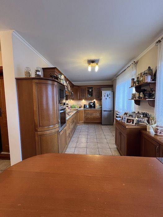 dużą, widną kuchnię połączoną z jadalnią, -