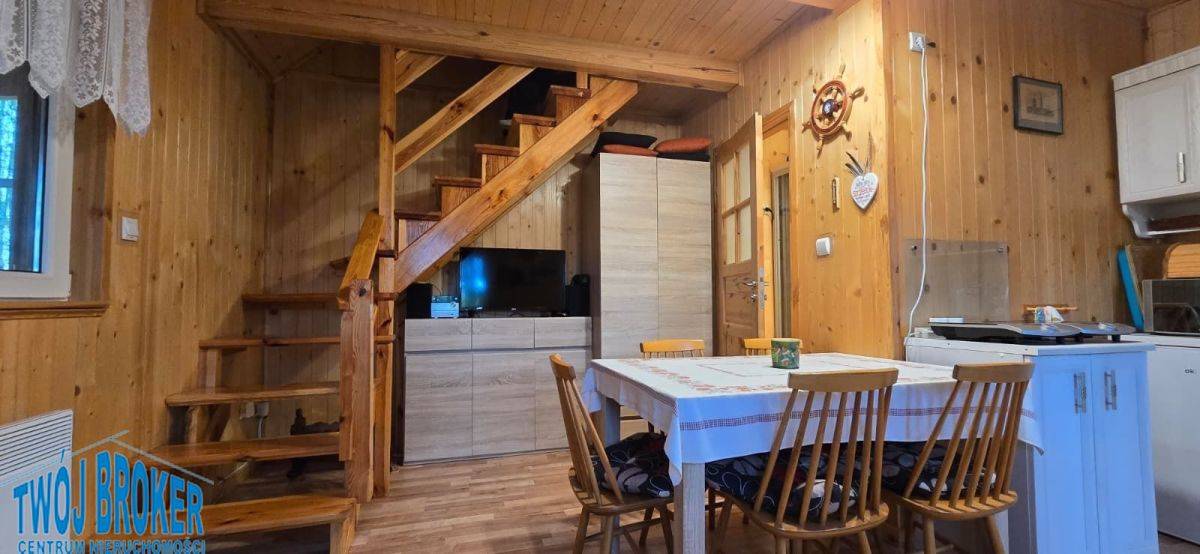 Sprzedam piękny drewniany domek letniskowy na pojezierzu bytowskim. Dom w cichym, spokojnym miejscu, na skraju małej kaszubskiej wsi, ok. 10 km od miasta Bytów, 1 km od wsi. Położony przy lesie iglastym, w otoczeniu brzozowego lasu. W okolicy trzy malownicze jeziora, w tym jedno idealne do kąpieli, drugie na wędkowanie, trzecie małe, kameralne w lesie. Działka wkomponowana w brzozowy las, w kształcie zbliżonym do kwadratu, dodatkowo udział w drodze dojazdowej. Własne ujęcie wody, na działce garaż wolnostojący ok. 20m2) plus budynek gospodarczy (ok. 10m2), wszystko z sosnowego drewna. Dom ogrzewany elektrycznie, dach dwuspadowy kryty blachodachówką, docieplony, odeskowany i opapowany. Dom składa się z salonu z aneksem kuchennym, sypialni, łazienki z wc oraz z tarasu (ok. 10m2). Działka ma funkcję budowlanej (zabudowa całoroczna). Własna ekologiczna oczyszczalnia, na działce miejsce na ognisko. Możliwy zakup z całym wyposażeniem w cenie. Dojazd dobry- płyty "Jumbo". Polecam dla osób szukających cichego i ustronnego miejsca na wypoczynek lub domu pod wynajem-turystykę. KUP Z GWARANCJĄ BEZPIECZNEGO ZAKUPU! Oferta sprawdzona i nadzorowana przez licencjonowanego pośrednika, licencja 4742. Kontakt i więcej informacji pod tel. 504 219 020. Zadzwoń już dziś i umów się na okazanie . TYLKO U NAS !Oferta nr 58470338 wysłana z systemu LocumNet Online
