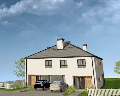 Projekt Herberta 44 w Gryfinie to inwestycja obejmująca jeden dom w zabudowie bliźniaczej, posadowiony na działce 1081 m2.