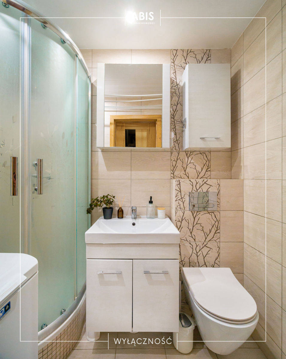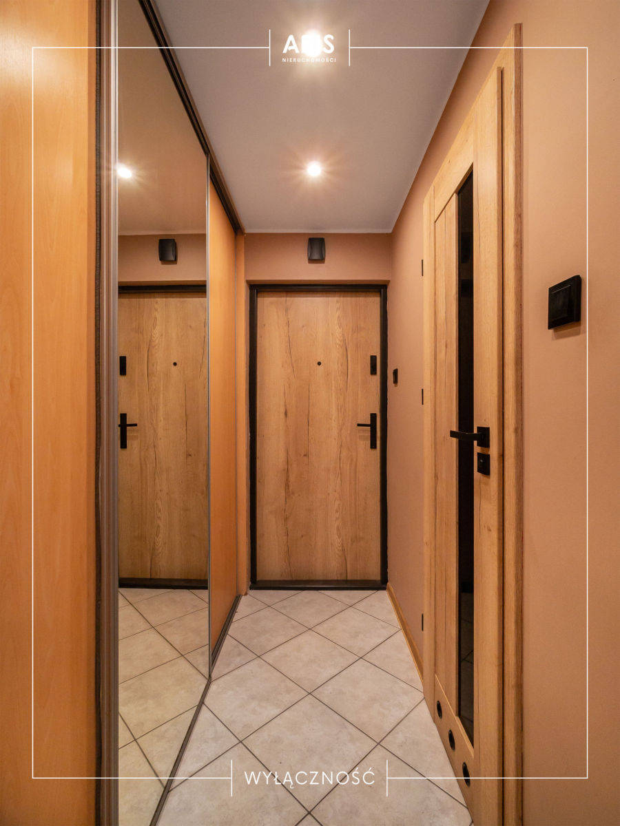 Mieszkanie jest w standardzie do wprowadzenia, odświeżone i wyposażone w nowoczesną kuchnię z nową zabudową, płytą gazową, piekarnikiem i okapem. Na podłogach w pokojach i korytarzu znajdują się panele oraz płytki (na korytarzu i w aneksie kuchennym). W łazience zastosowano płytki, prysznic, zabudowaną szafkę z umywalką oraz mniejszą szafkę. W korytarzu znajduje się pojemna, wykonana na wymiar szafa. Okna PCV z ekspozycją na wschód i zachód, co zapewnia dobre nasłonecznienie i cyrkulację powietrza. Ogrzewanie miejskie, ściany gładkie.