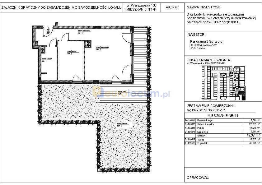 MIESZKANIE Z TARASEM I OGRÓDKIEM!!!Przedstawiam ofertę sprzedaży mieszkania o pow. 49,37 m², zlokalizowanego na parterze nowego budynku z windą. Lokal posiada jeden z najlepszych układów w bloku - pomieszczenia są funkcjonalne, ustawne i zapewniają wygodną aranżację przestrzeni.