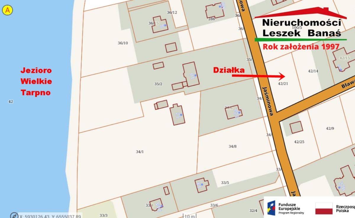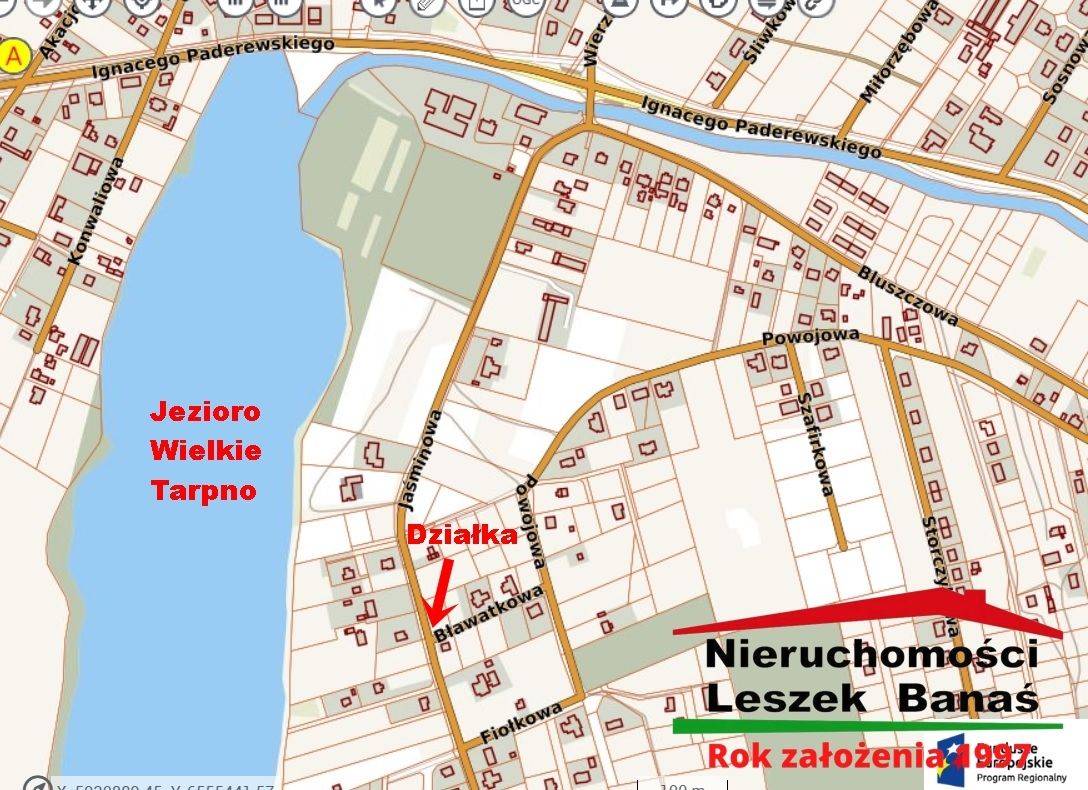 Oferta na wyłączność dostępna tylko w naszym biurzeDziałka budowlana położona przy ulicy Jaśminowej róg Bławatkowej bardzo blisko Jeziora Wielkie Tarpno. Wszystkie media wzdłuż działki prąd , gaz , woda , kanalizacja , sieć telefoniczna. Nowe oświetlenie uliczne.