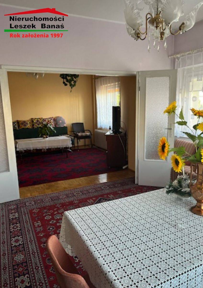 4 pokoje (3 przejściowe, 1 samodzielny - idealny np. na sypialnię lub gabinet),oddzielna kuchnia,łazienka,przedpokój. Centralne ogrzewanie piec gazowy dwufunkcyjny.