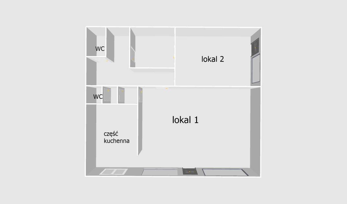 Parter budynku to dwa oddzielne lokale, o powierzchni ok 80 m² i ok 35 m², które mogą pełnić funkcję lokali gastronomicznych, handlowych lub usługowych.