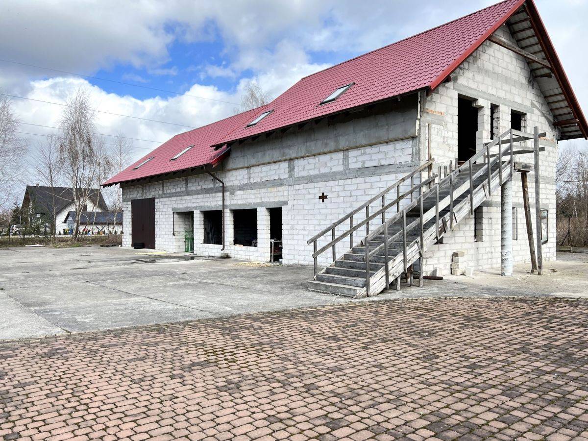 Dodatkowo na działce znajduje się budynek w stanie surowym otwartym o pow ok 400 m2, który może być magazynem, garażem, może również pełnić funkcję mieszkalną.