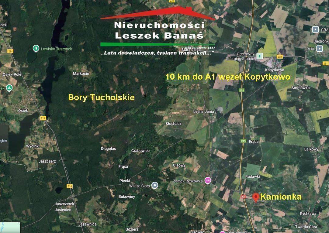 Bardzo atrakcyjna lokalizacja w pobliżu Borów Tucholskich , do wjazdu na autostradę A1 w Kopytkowie 10 km, miejscowość Nowe 7 km do Grudziądza 30 min jazdy samochodem