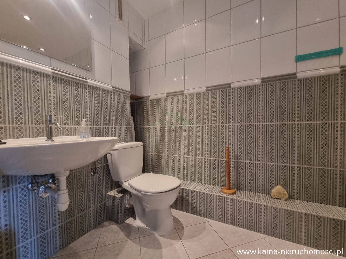 Stolarka okienna wykonana z PCV z roletami wewnętrznymi, a na podłogach panele i kafle, które są łatwe w utrzymaniu czystości.